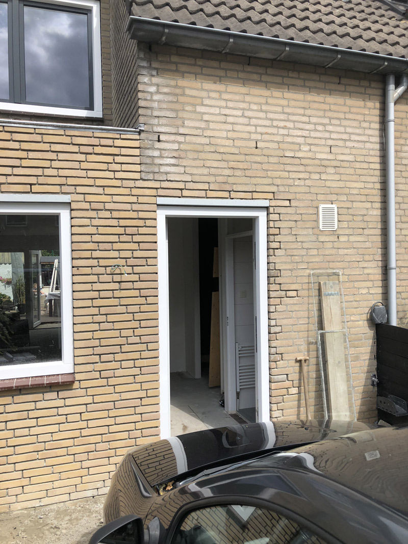 - Wij plaatsen de kozijnen of gevelbekleding zoals afgesproken.